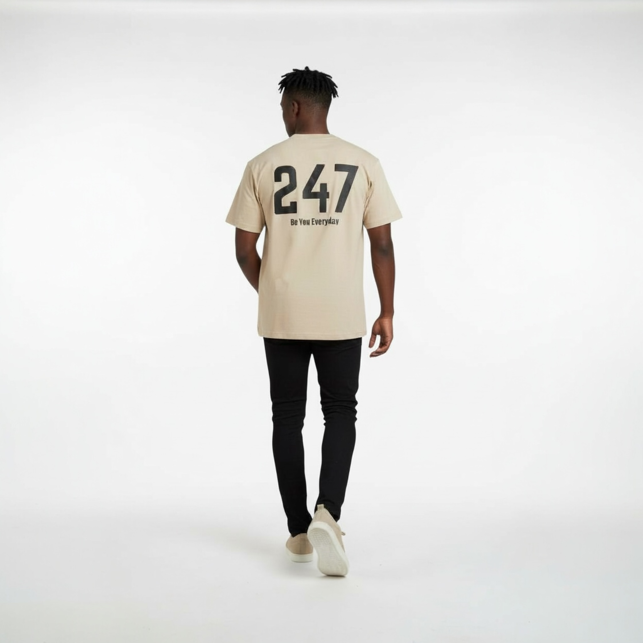 Whether you’re styling it with joggers for a laid-back vibe or layering it under a jacket for a street-ready look, this tee is designed to keep up with your lifestyle — 247.