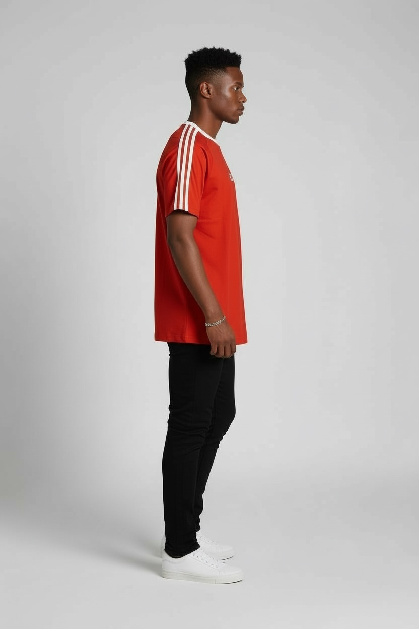 The raglan sleeves feature three bold stripes, meticulously stitched (not printed) for a premium, polished look. Whether you're dressing up for a casual outing or keeping it relaxed at home, this t-shirt effortlessly adapts to your vibe.